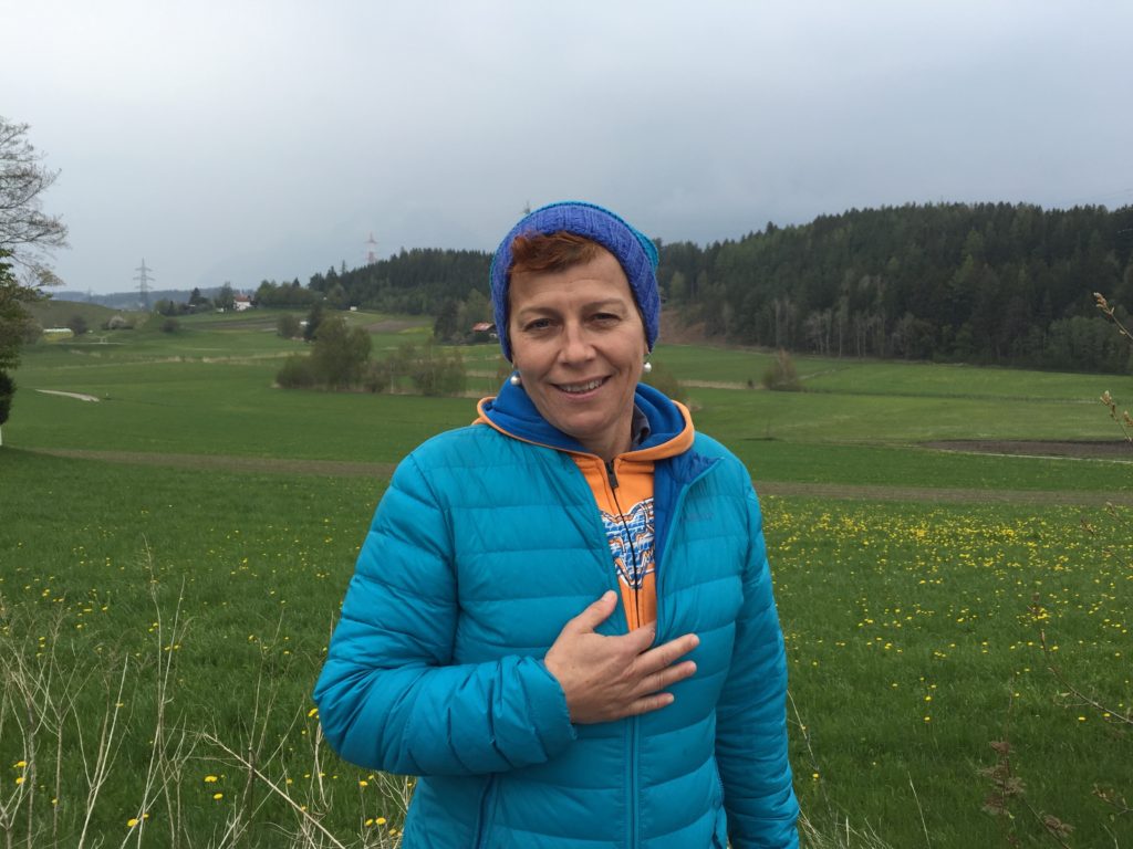 The photo below was taken last April when she was in remission and we went on a long walk in the chilly meadows above Innsbruck while Fritz played tennis in a nearby club.